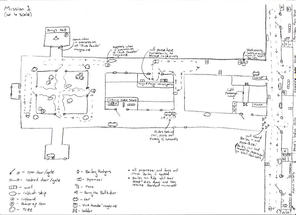 Here is my first effort, a 2D sketch of the first level. Once again, be prepared to be astounded by my peerless graphical skills and sophisticated handwriting.